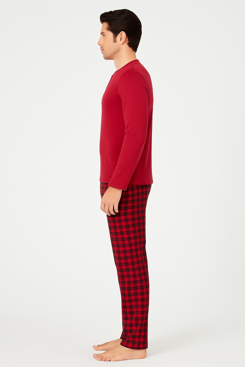 Pijama din bumbac si modal , de calitate excelenta , cu bluza simpla si pantaloni cu patratele.