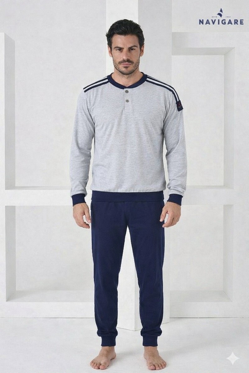 Pijama pentru barbati Navigare, realizata din bumbac 100%, conceputa pentru a oferi confort maxim si libertate de miscare in timpul somnului sau in momentele de relaxare acasa.