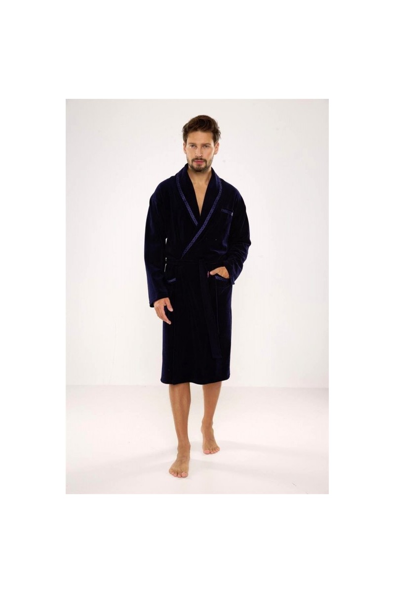 Halat de barbati cu maneca lunga, rever decorat cu ornament elegant, cordon in talie, prevazut cu doua buzunare laterale incapatoare.