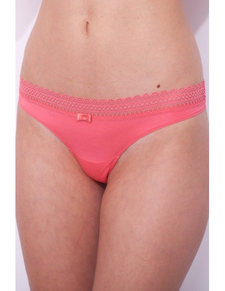 Chilot tanga din microfibra si dantela fina, talie medie, clin de bumbac.