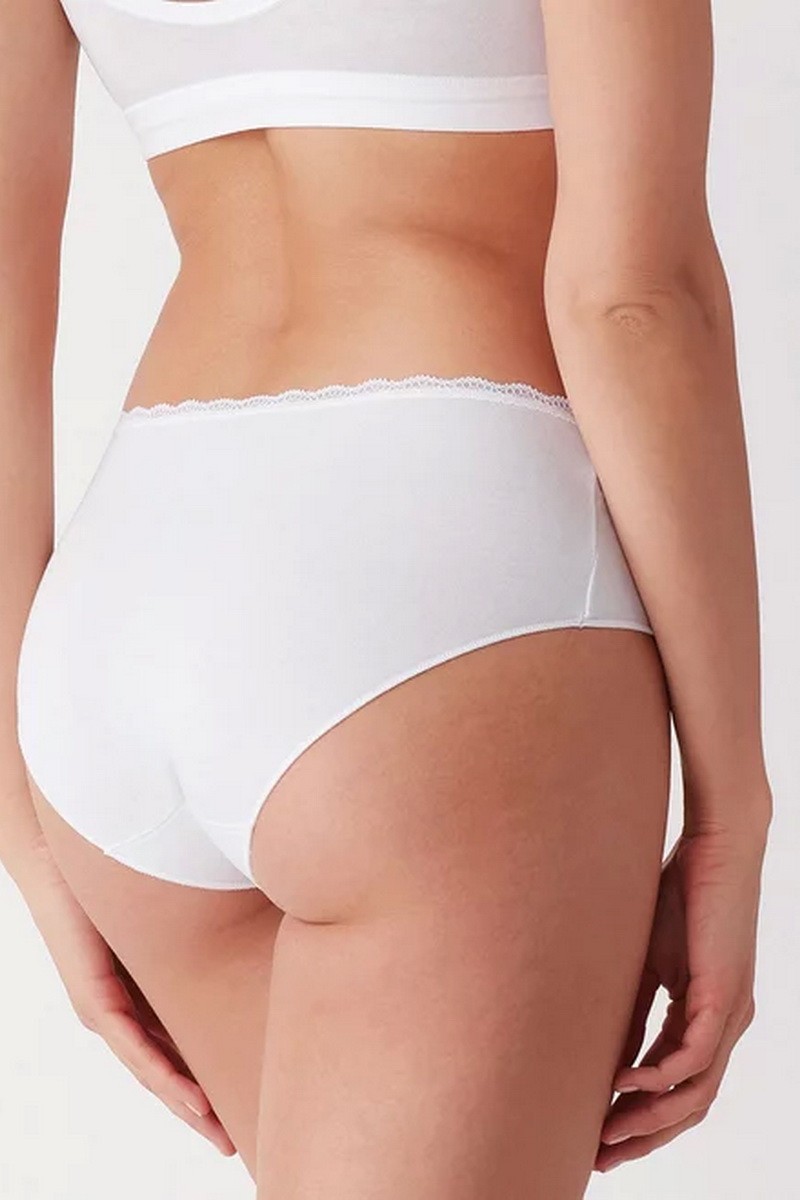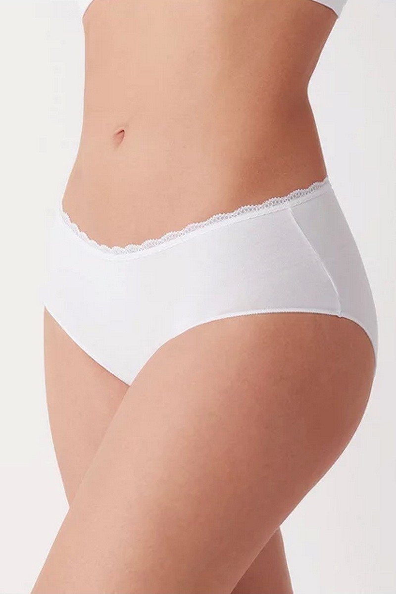 Chiloti clasici din bumbac cu talie medie si banda subtire dantelata - Cotonella GD293