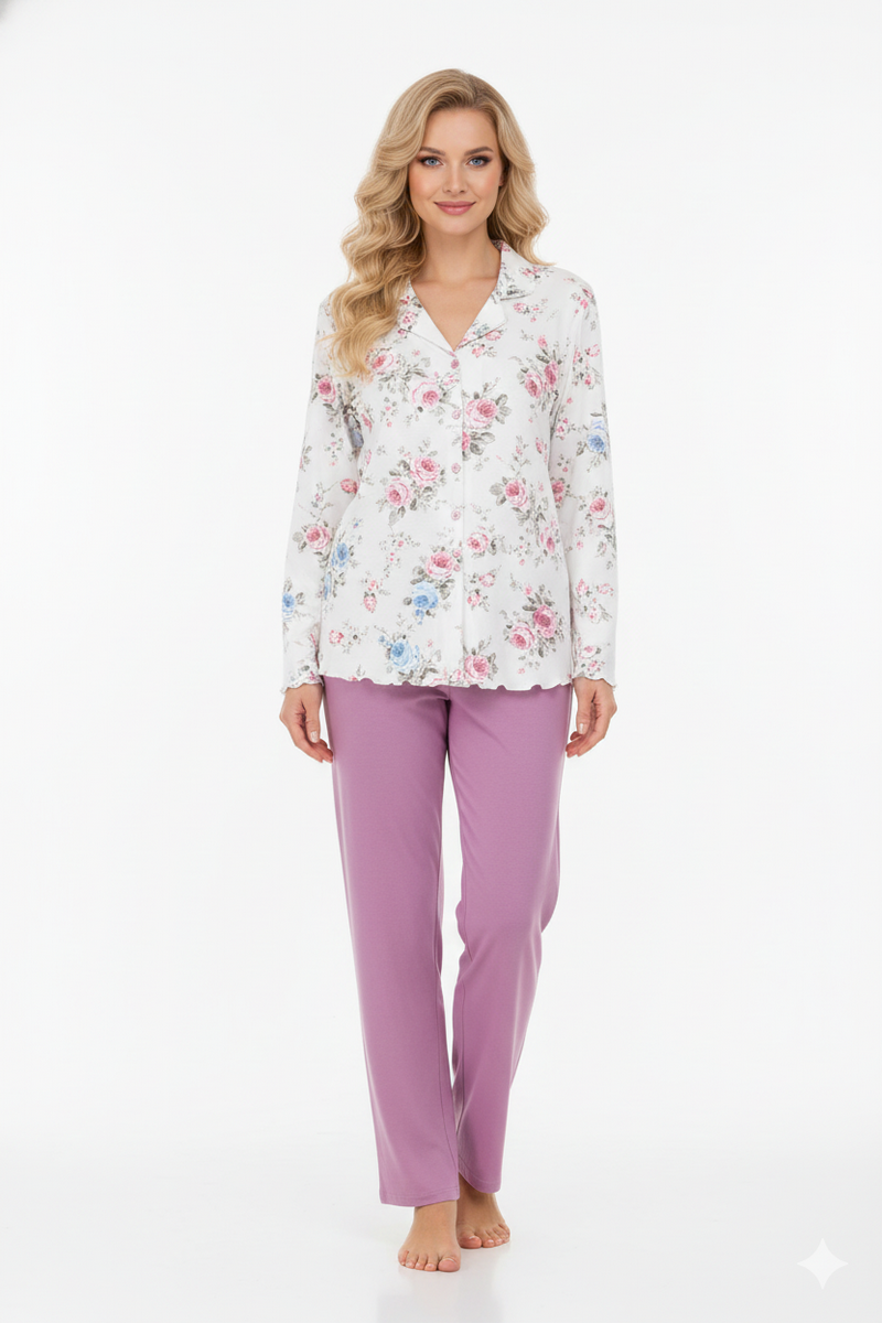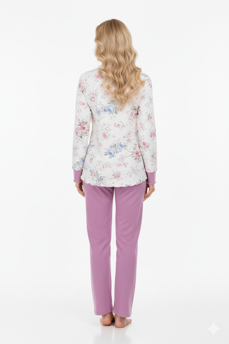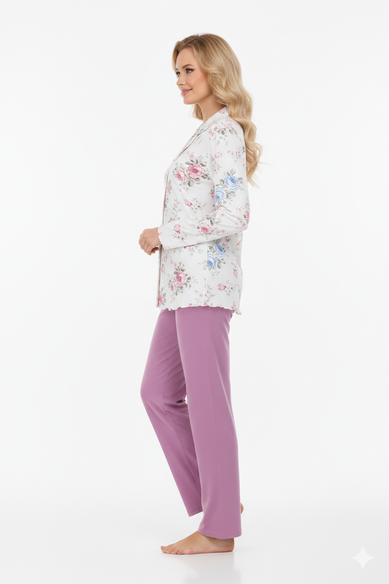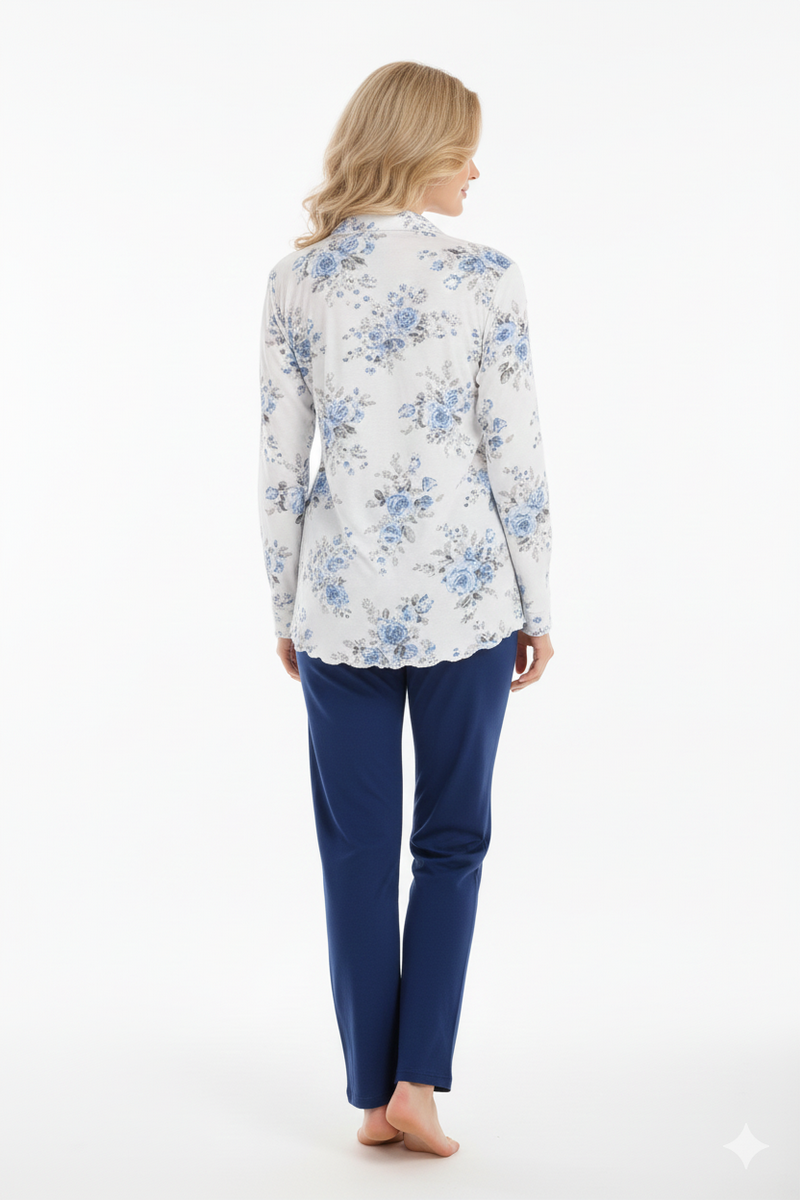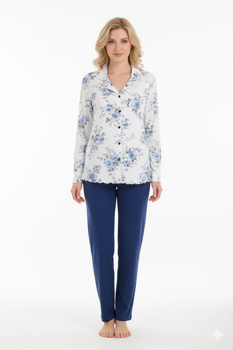 Pijama din modal, model clasic cu pantalon lung si bluza cu maneca lunga.