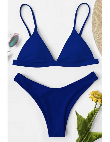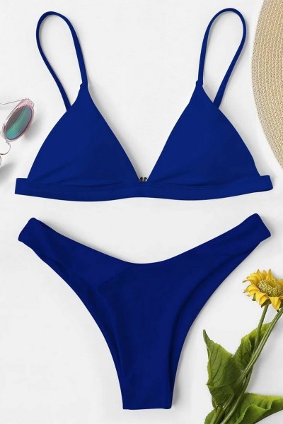Costum de baie din doua piese, sutien triunghi cu buretei detasabili.