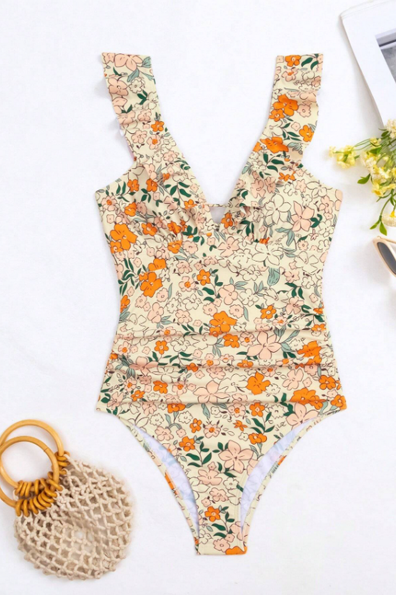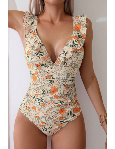 Costum de baie intreg cu volane si imprimeu floral- GlamGirl 158