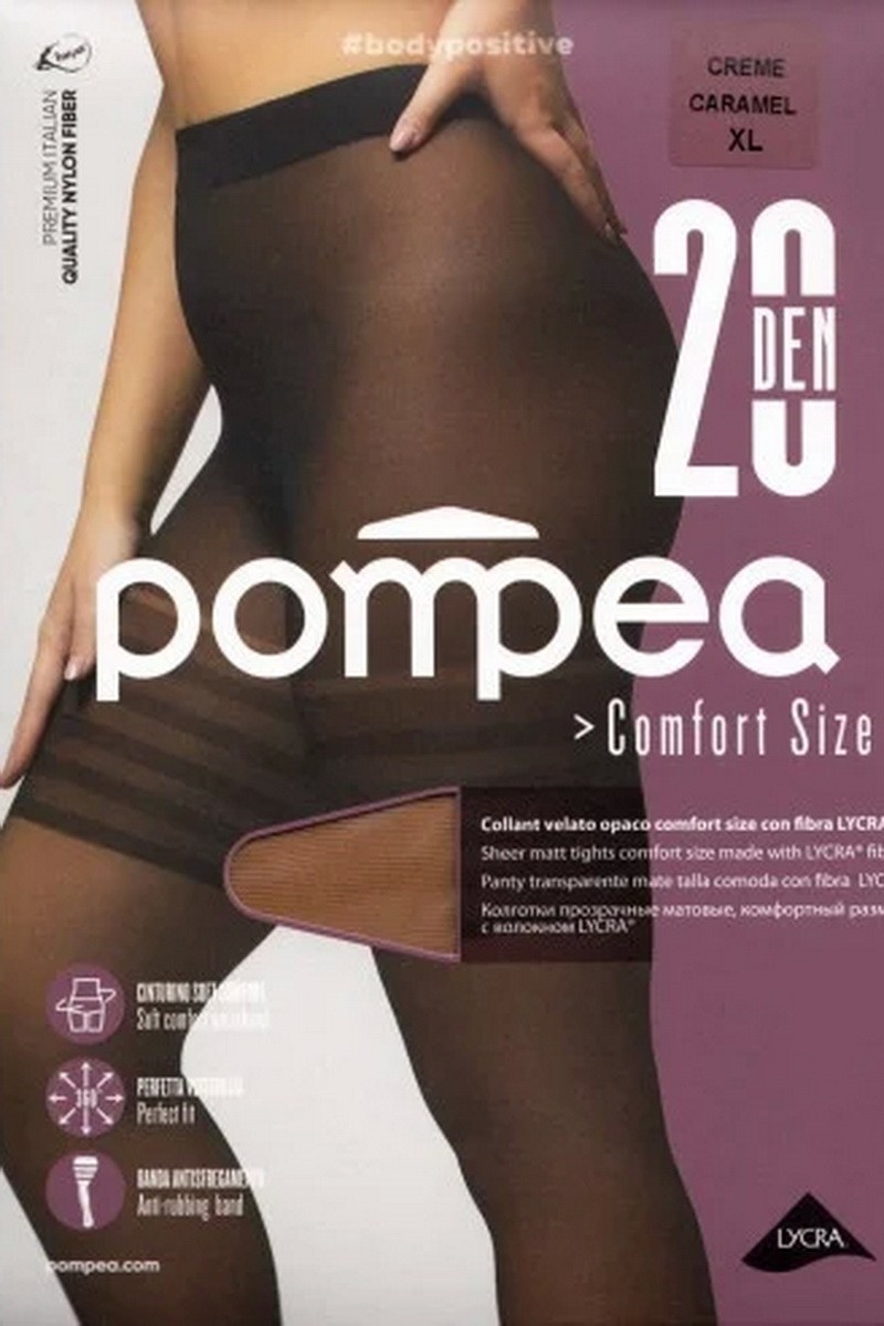 Ciorapii Pompea Comfort Size 20 den sunt mati, prezinta bazon, clin, varf nemarcat si banda elastica confortabila in talie.