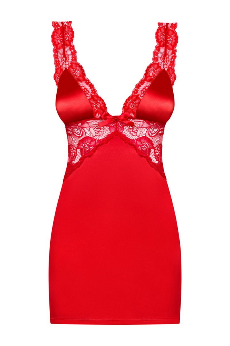 - neglijeu din material satinat si dantela fina si eleganta in zona bustului si sub cupe, bretele fixe, reglabile dantelate.