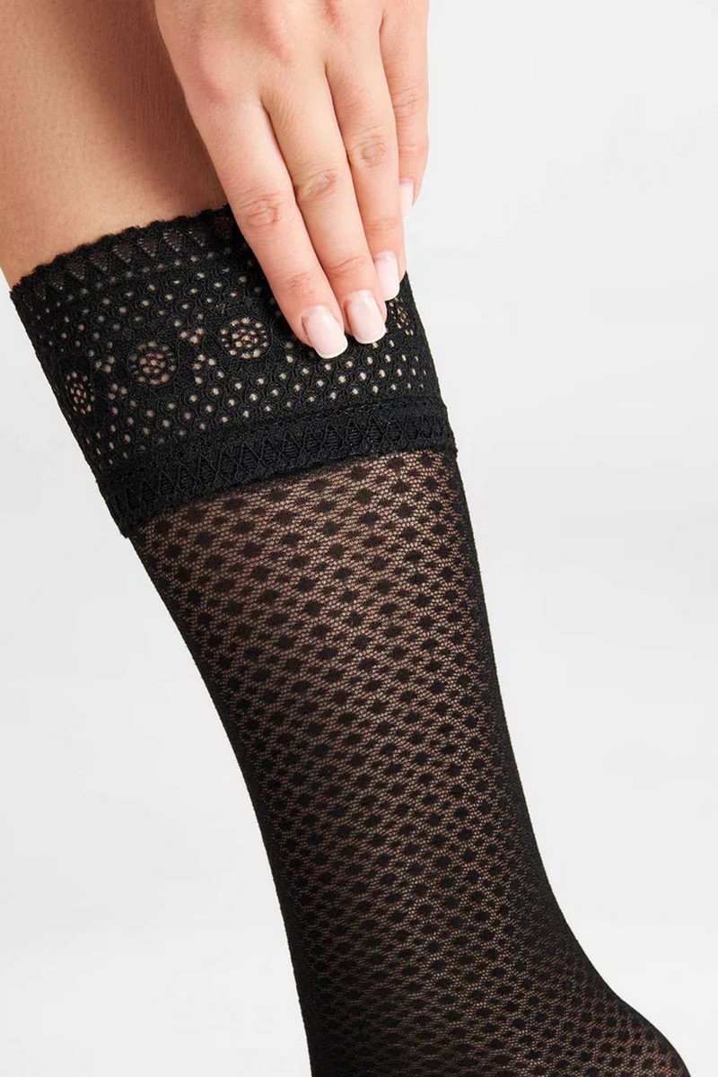 Sosete negre fine cu model geometric si banda din dantela - Fiore Bravo