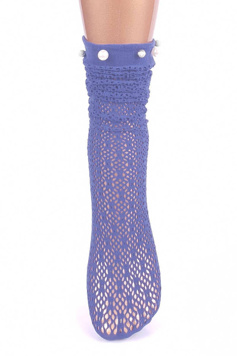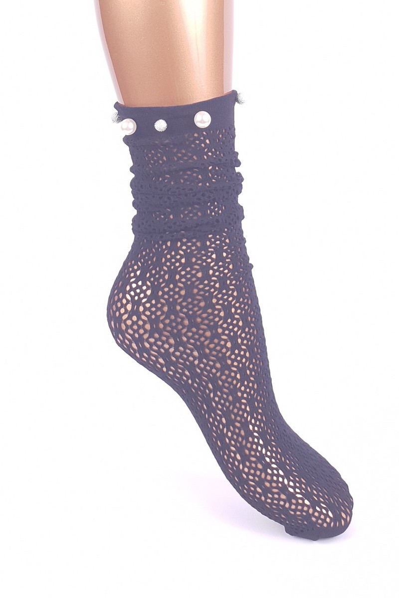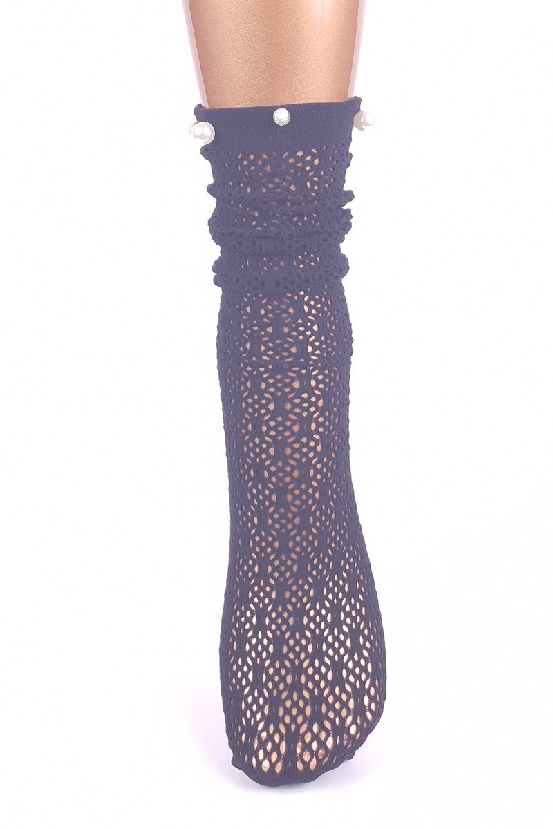 Sosete cazute pe glezna din tesatura tip plasa cu perle.