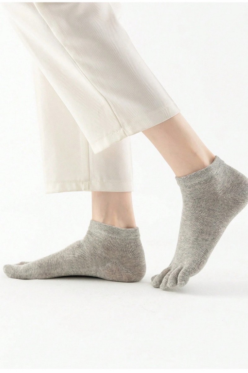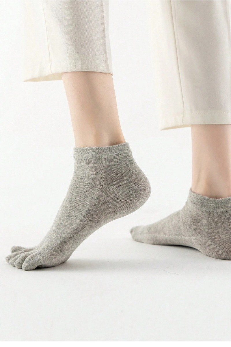Sosete din bumbac cu degete, gri, cu calcai format.