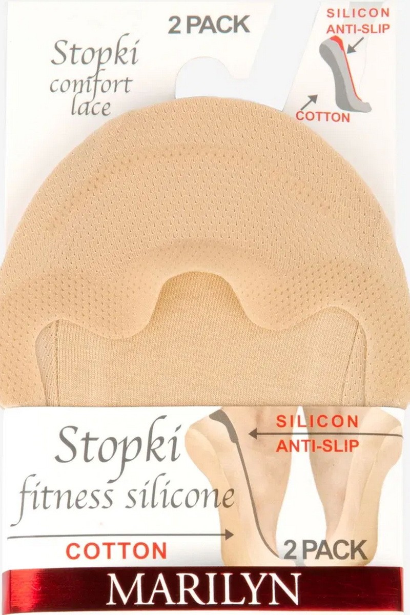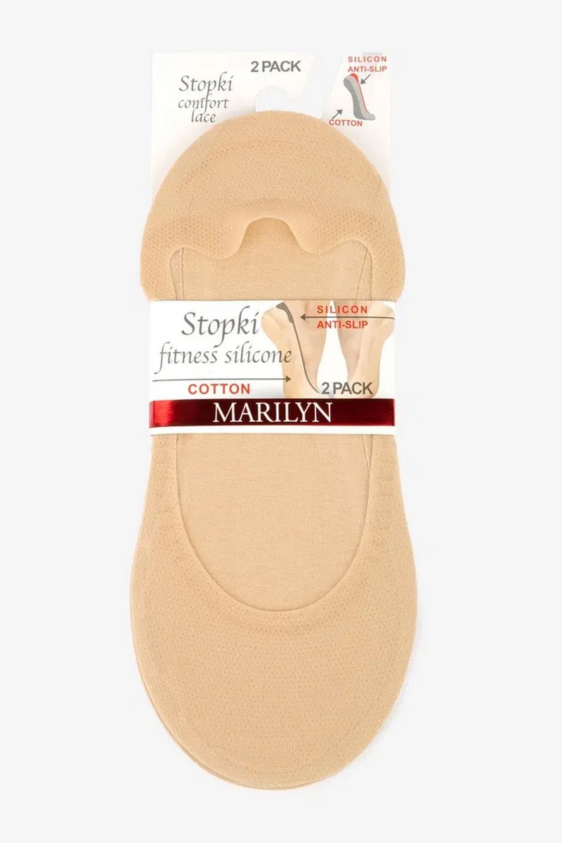 Talpicii de dama Marilyn Fitness Silicone sunt realizati din microplasa pentru a permite aerisirea piciorului, au banda din silicon pe interior pentru o mai buna fixare pe picior. Talpa este confectionata din bumbac, material natural prietenos cu pielea. Perfecti pentru a fi purtati in zilele caldurose de vara.